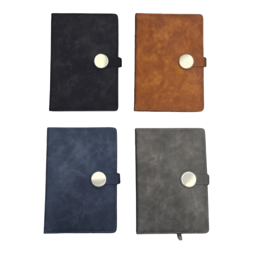Artistic A5 journal featuring a weathered marble-effect texture and a secure circular magnetic button tab closure.